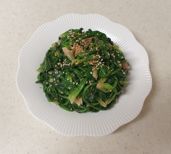 철분, 비타민, 식이섬유 풍부한 시금치 담백한 맛으로 자극이 적고 영양가가 높습니다.