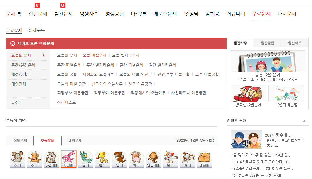● 네이트 무료 운세 바로가기